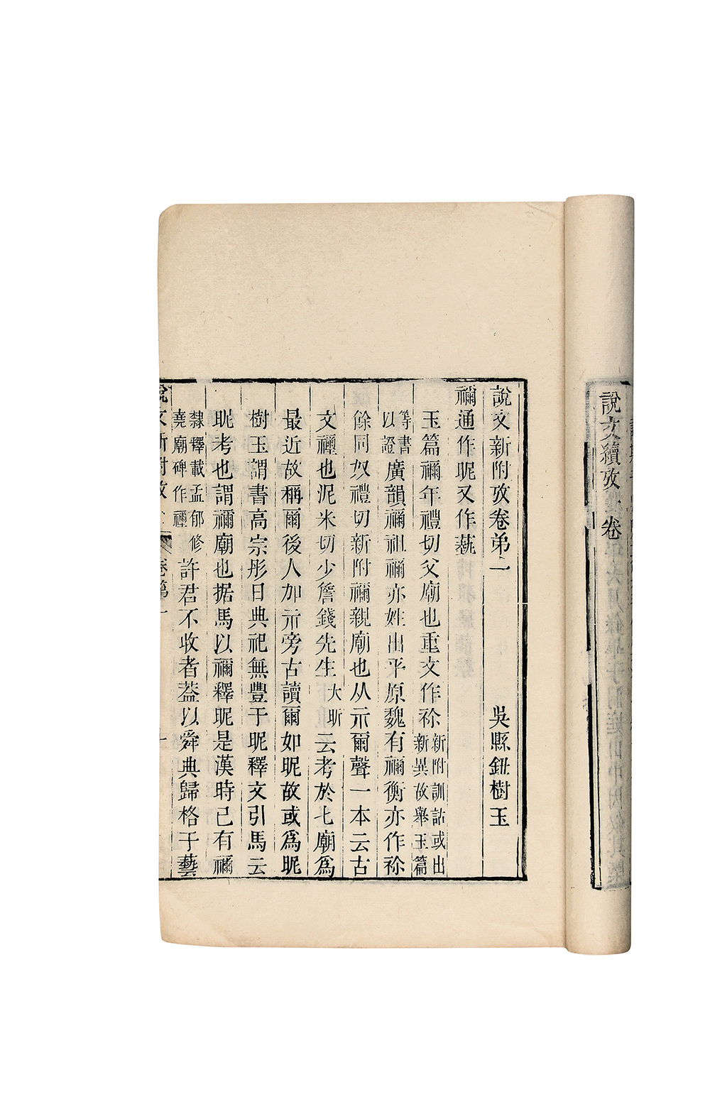 是书老装未衬,天头极为开阔,字取方体。前有同治七年金兰跋一则,知其得嘉庆非石居刻《说文新附考》残版,又从钮氏孙惟善处得手写本参以补刻,是为此本。