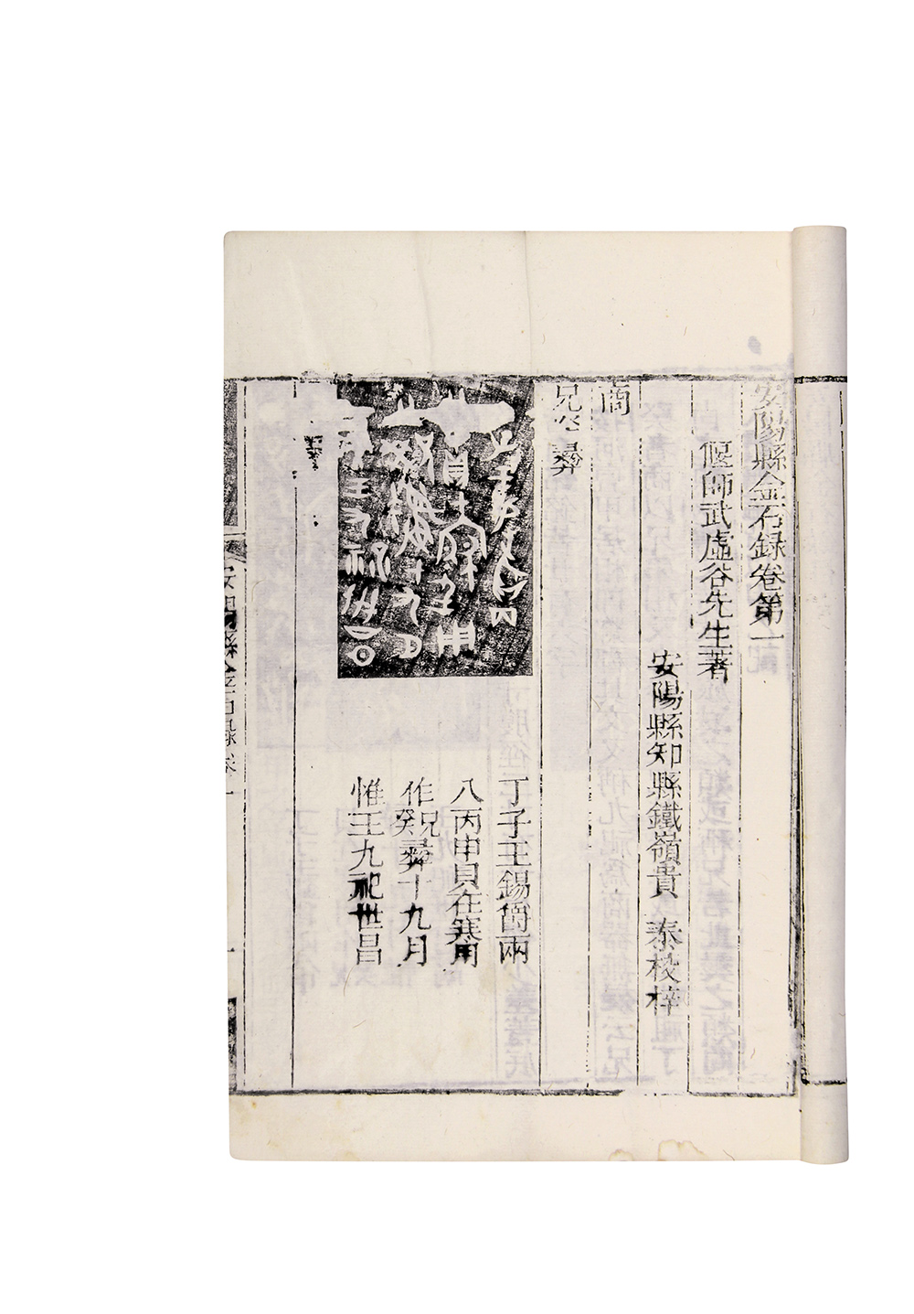 是书为白纸印本,老装旧函,由安阳知县铁岭校刊。全书以年代先后为次序分别著录了河南安阳地区遗存的金石文物,书中摹绘图像考据文字颇为详尽。武亿,河南偃师县人,性好金石,工考据。曾授博山知县,著有《授经堂诗文集》、《偃师金石记》、《钱谱》等。