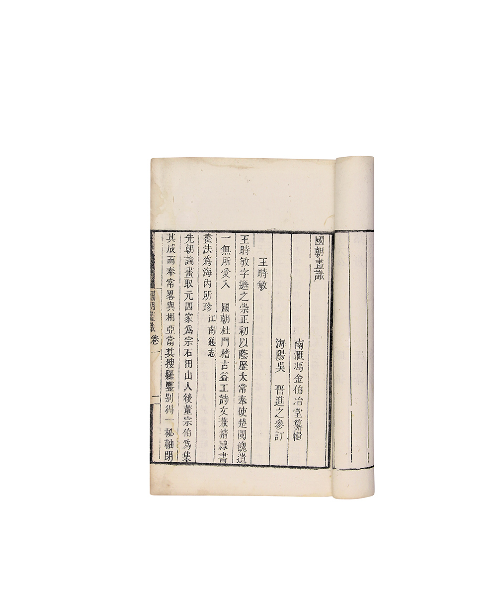 是书为中国清代画史著作,收入清初至乾隆末年九百余名画家的传记,是接续张庚《国朝画征录》并有所补充的断代画史。白纸印製精良。冯金伯,字冶堂,号墨香,江苏南汇人。能书法,善山水,亦工诗词。