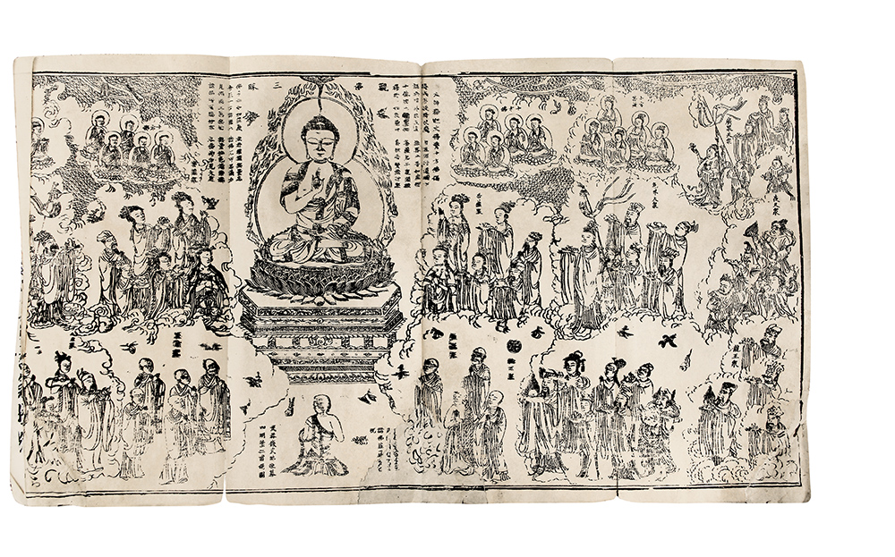 拍品经折装,字形方整,其大若钱,有补钞。卷前有佛说法图,经末有刊经条记云:“光绪十四年浙江西湖昭庆慧空经房后裔省恒等重刊板藏本房”。