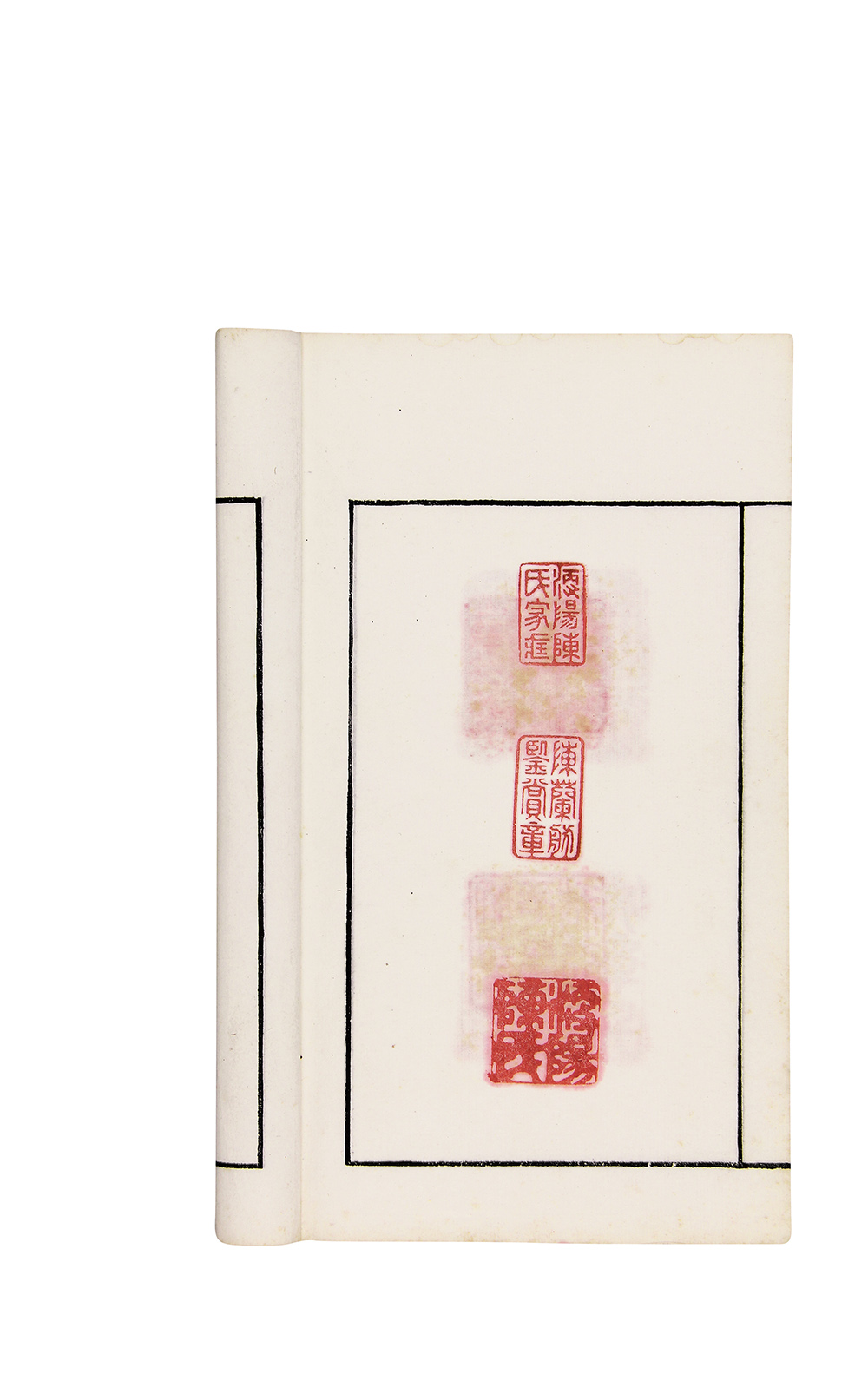 拍品为旧钤印辑本,集印蜕一百二十余方,内容有陋室铭文,警句,吉语,满文印,肖形印及姓名印,如:“浭阳陈氏家藏”,“陈兰舫鉴赏章”等。