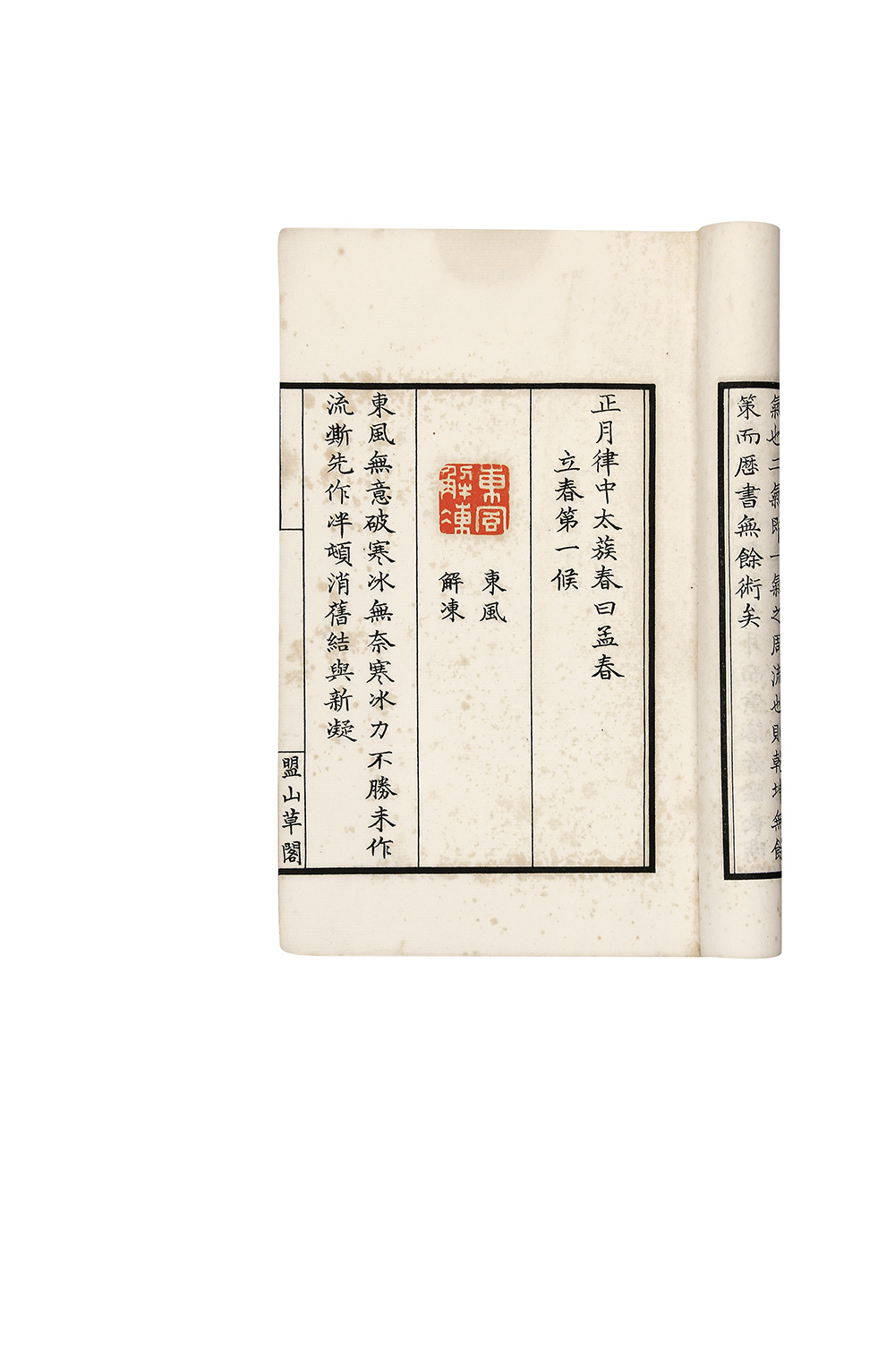 拍品有盟山草阁印本《七十二候印谱摹本》一册,文字部分为石印本,章为钤盖。另有临摹本一册,据盟山草阁印本摹印,颇见功力。