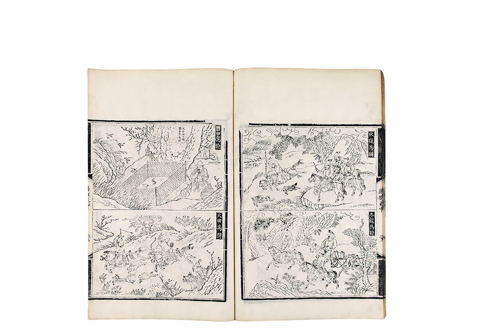 拍品分为上卷、中卷、下卷前、下卷后。开本阔大,图片印製精良,牌记页有“嘉庆六年影宋绘图本重摹刊”、“尔雅音图”、“艺学轩藏版”字样,为嘉庆原刻本,品相完好。