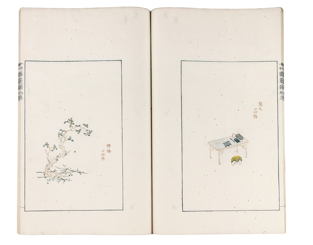 提 要: 拍品为民国时期出版的《中国版画史图录》中的一种,是郑振铎在上海印製的。1940年前后,郑振铎开始了酝酿已久的《中国版画史图录》的宏伟计划,初步计划分二十四卷出版,其中图录二十卷,想采用珂罗版的形式复製古代版画作品数千幅。后因一年后良友出版社被查封,此计划完全搁浅,只印出了少量版画。而其中只有《十竹斋笺谱》是使用传统的饾版拱花技艺印製,又因为出版于抗战时期,故传世极少,可为珍贵。