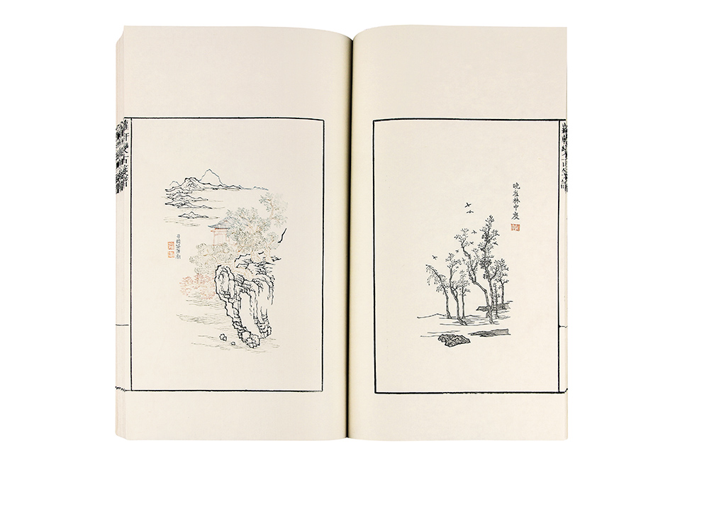 提 要: 此书原装原函原签,开本宏阔,品相极佳。其在1981年刻成之时就名动海内,当时朵云轩曾在杂志上提前公布了印量和价格,其中白纸本的定价就高达300元,就当时的物价水平来看这是极高的价格了。全书将木板水印所能用到的饾版、拱花等工艺全部使用了出来,是现代笺谱印製的集大成之作,仅印三百部。