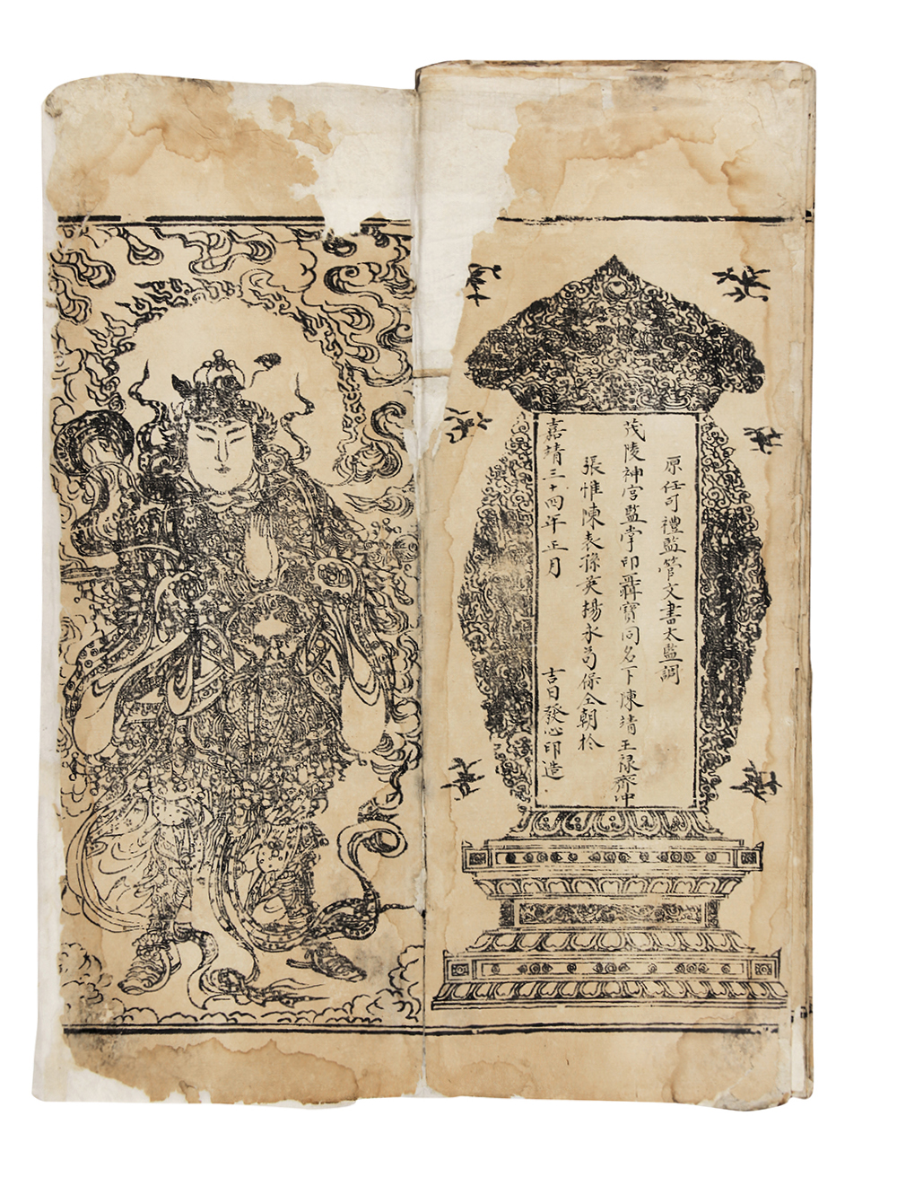 拍品为明清间佛经数种,包括明永乐北藏本《大方等大集经》第八卷;嘉靖刻本《大方广佛华严经》存一卷,卷末有嘉靖三十四年司礼监太监聂宝等人的印造牌记,聂宝曾代表朝廷册封过朝鲜国王;另有明白棉纸印本《大弥陀经》残卷、清写本《妙法莲华经残卷》及清刻本残卷等。