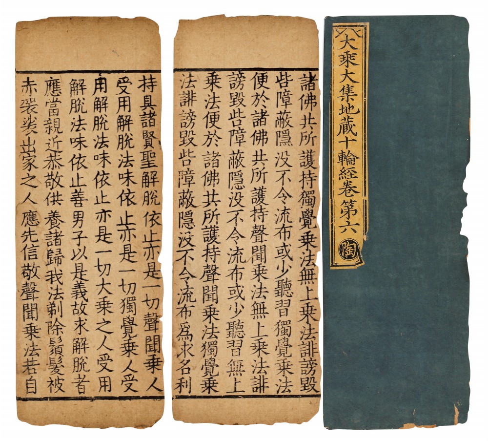 此为《永乐南藏》零种初印本,原书十卷,拍品存第六卷,千字文编号是“陶”。本经译于唐永徽二年(651),共八品。内容系赞叹地藏菩萨之功德,并叙述如来依地藏菩萨之问,而由本愿力成就十种佛轮,能破除末世之十恶轮。