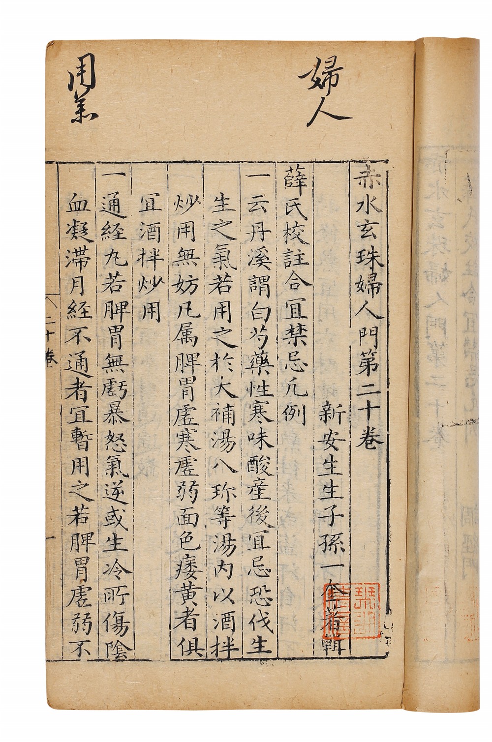 是书写刻上板,“玄”字不避讳,拍品为《女科》三卷,即卷二十至卷二十二。