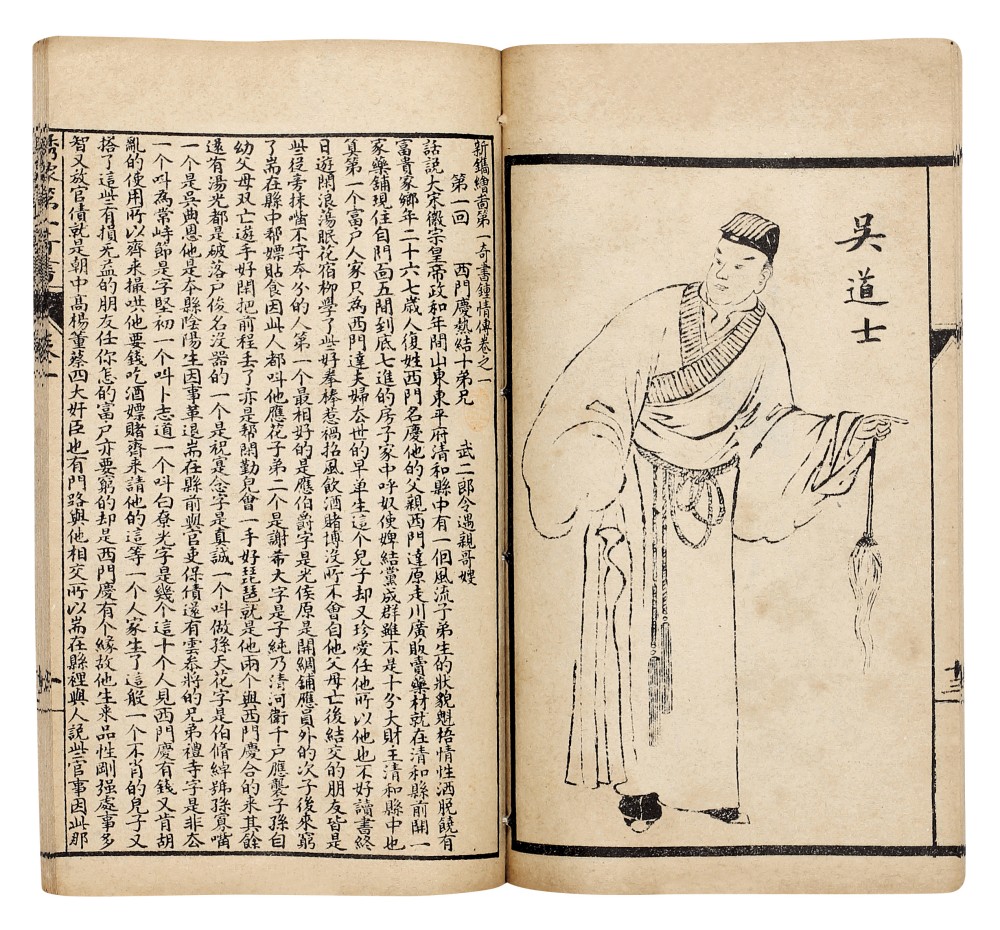 是书开本较为小巧,为石印本,共六卷一百回。牌记页题“光绪二十五年菊秋香港依西法石印”、“第弌奇书“、”云游海外客篆额”字样。前有光绪三十年序一则。此书即《金瓶梅》,因其为禁书,书商故意变更书名刷印,首收人物肖像二十六幅。