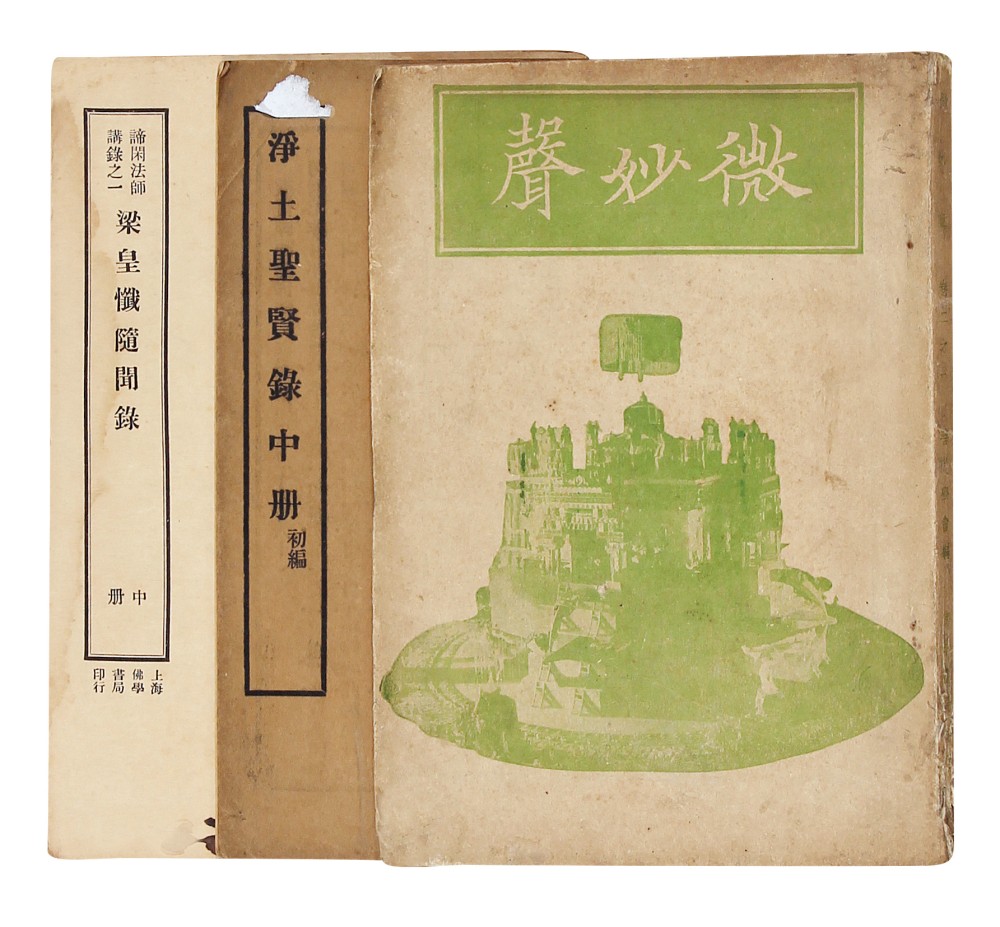 拍品包括《微妙声》一册,民国二十九年(1940)佛学书局出版;《禅学宝典》一册,日本明治四十三年(1910)贝叶书院出版;《金刚般若波罗蜜经讲录》一册,民国二十一年(1932)上海佛学书局出版;《唯识的科学方法》一册,民国二十一年(1932)上海佛学书局出版等数种。