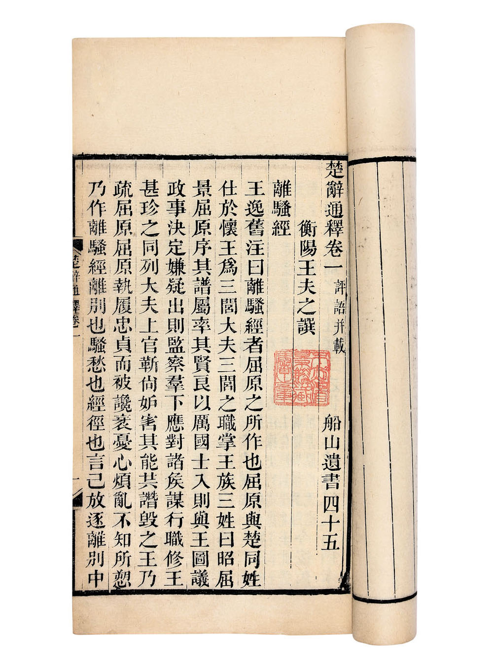 提 要: 是书为《船山丛书》零种,封面文字为汤景麟所题,文中有其批注一则。汤炳正(1910-1998年),字景麟,室名渊研楼,山东荣成人。语言学家、楚辞学专家。受业于章太炎先生,章太炎先生曾称其“为承继绝学唯一有望之人”,代表作有《屈赋新探》、《楚辞类稿》、《渊研楼屈学存稿》等。