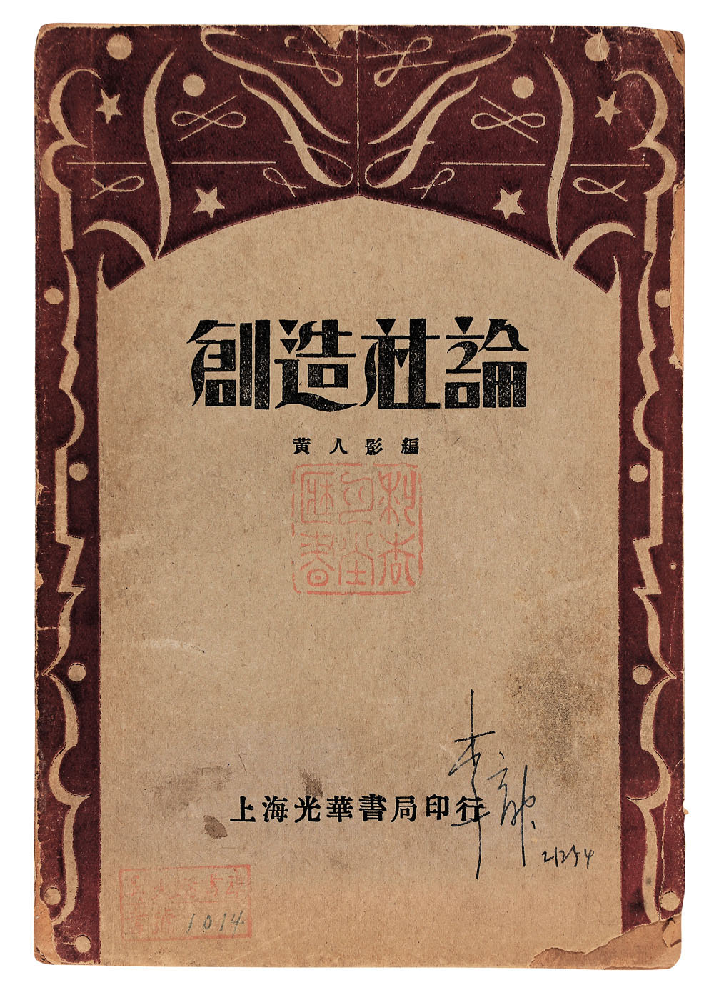 是书1932年十二月出版,仅印2000册,收《创造社和中国文学运动》、《读“创造社”》、《创造社访问记》等文,封面有签“李育中”,扉页有李育中钤印,书中有多处其朱墨批改。