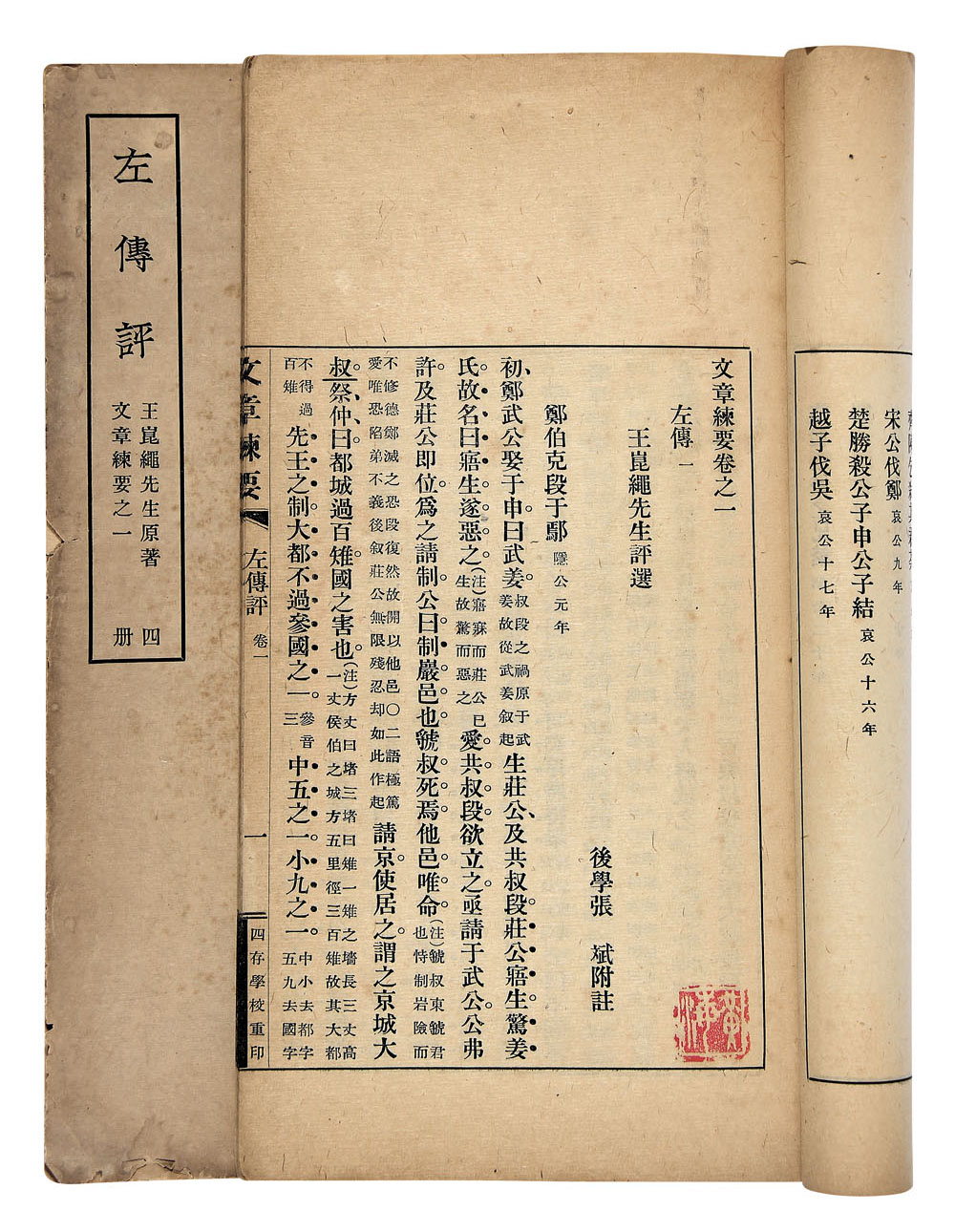此书为作者签名赠送本,封面题“拙注左传评四册,锡九表叔大人教正表姪张斌谨呈”。
