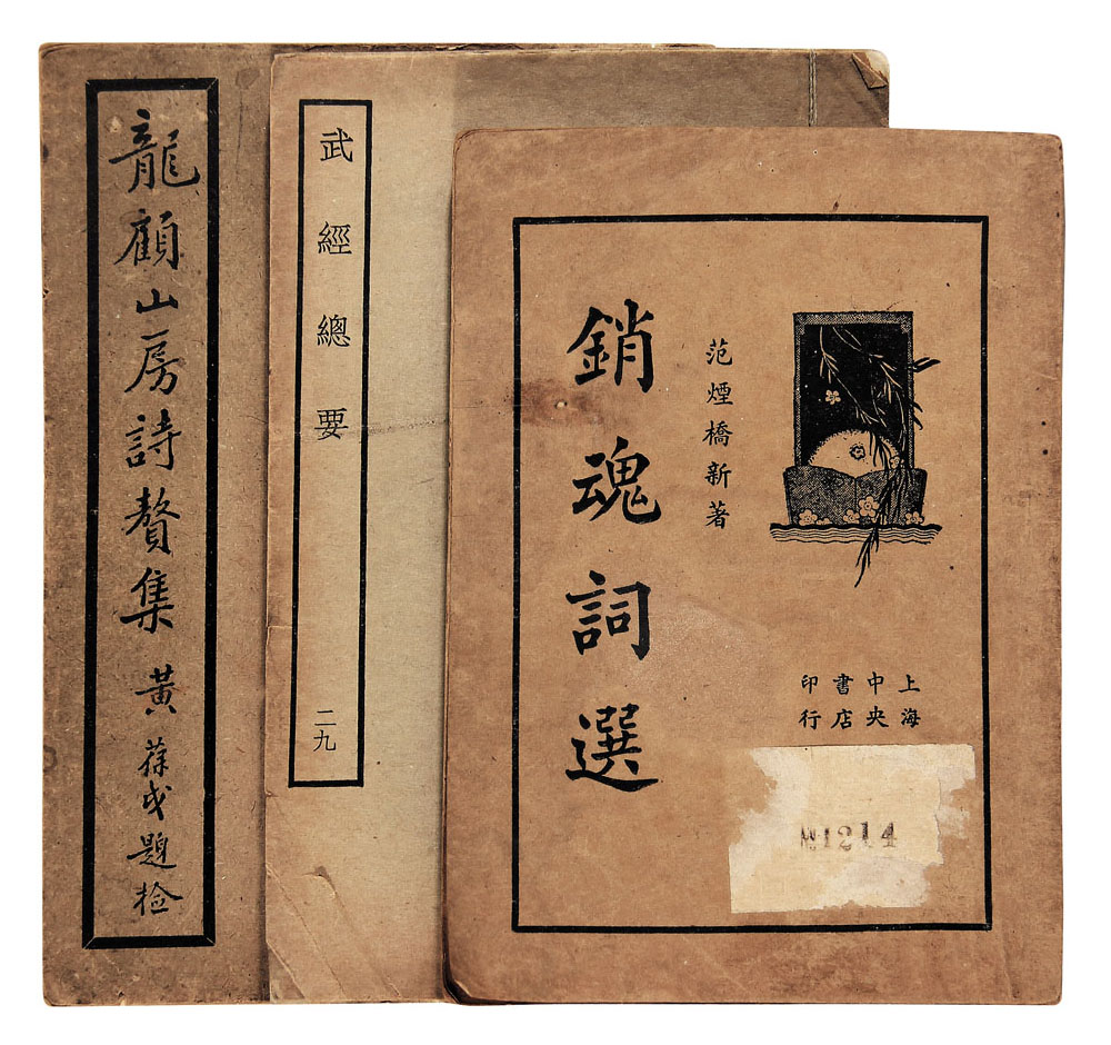 拍品包括《武经总要》一册,民国石印本;《销魂词选》一册,民国二十三年(1934)上海中央书店出版;《明日之中国文化》一册,民国二十五年(1936)商务印书馆出版;《杭州与西湖》一册,1955年新知识出版社出版;《羊城新八景》一册,1963年羊城晚报社出版等数种。