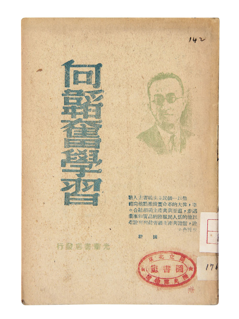 拍品包括《国语注解诗经》一册,民国二十三年(1934)广益书局出版;《书目答问》一册,民国二十五年(1936)上海商务印书馆出版;《生物科学状况》一册,1949年天下图书公司出版;《向韬奋学习》一册,1948年光华书店出版等数种。