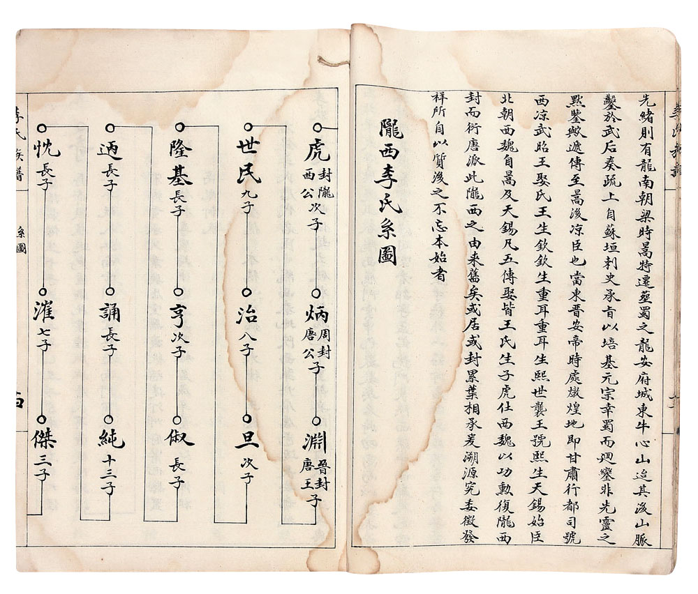 是书为白纸印本,由李显文撰修,其先祖陇西李氏有李虎、李炳、李渊、李世民等人。