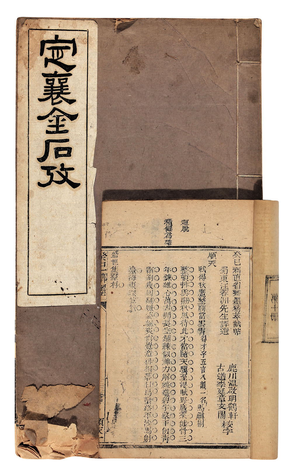 拍品包括《定襄金石考》一册,存卷二,排印本;《直省乡墨精萃》六册,包括目录、试帖、顺天、陕西、山西、河南、四川、甘肃、广东、福建、浙江地乡试文章册,清光绪刻本;《光绪临汾钱粮册》一册,清刻本;有破损。